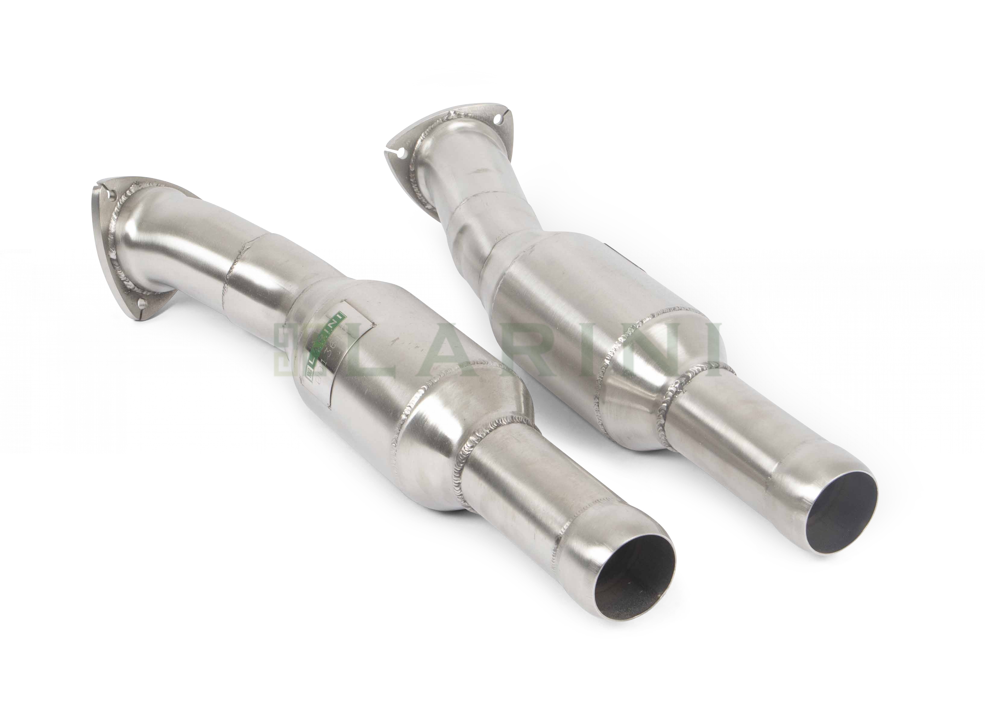Larini 100-cell sports cats replace the original secondary catalytic converters, and clean emissions while permitting a significant power increase - without any technical or legal issues. The original lambda/heat probes connections are retained in their correct positions for the proper operation of the OBD (On Board Diagnostics) system.