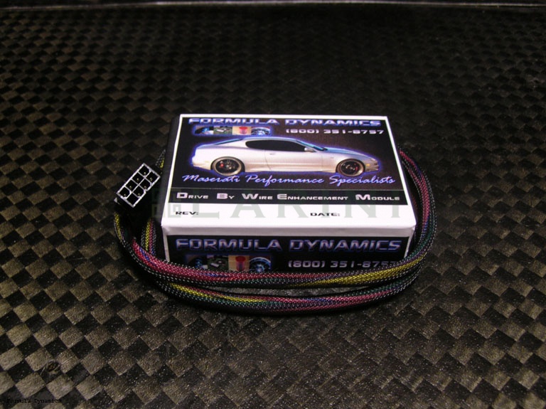 The Formula Dynamics Drive By Wire Enhancement Module (DBWEM) optimizes your Maserati's Drive By Wire System to produce improved performance and response compared to the factory programming. Today's Drive By Wire systems for Maserati's are designed with the luxury motorist in mind. As such, the vehicle is engineered to produce the smoothest, most predictable response and requires you to push the pedal to the floor in order to get it to respond in a true sports car fashion.